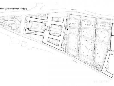 Die Stadt Leipzig ließ im Jahr 1992 die Abteilungswände rekonstruieren und erhaltene Einzelgrabmale wieder aufstellen. Unser Büro lieferte die Planung zur Rekonstruktion der historischen Wege und erstellte ein Bepflanzungskonzept. Der Friedhof wurde zur öffentlichen Parkanlage, wobei der Friedhofscharakter erhalten blieb. Im Jahr 2010 wurde der Vegetationsbestand erneut kartiert und bewertet. Daran schloss sich im Jahr 2014 die Ausführungsplanung für die Auffrischung der Bepflanzung an den Wandgrabstellen an.